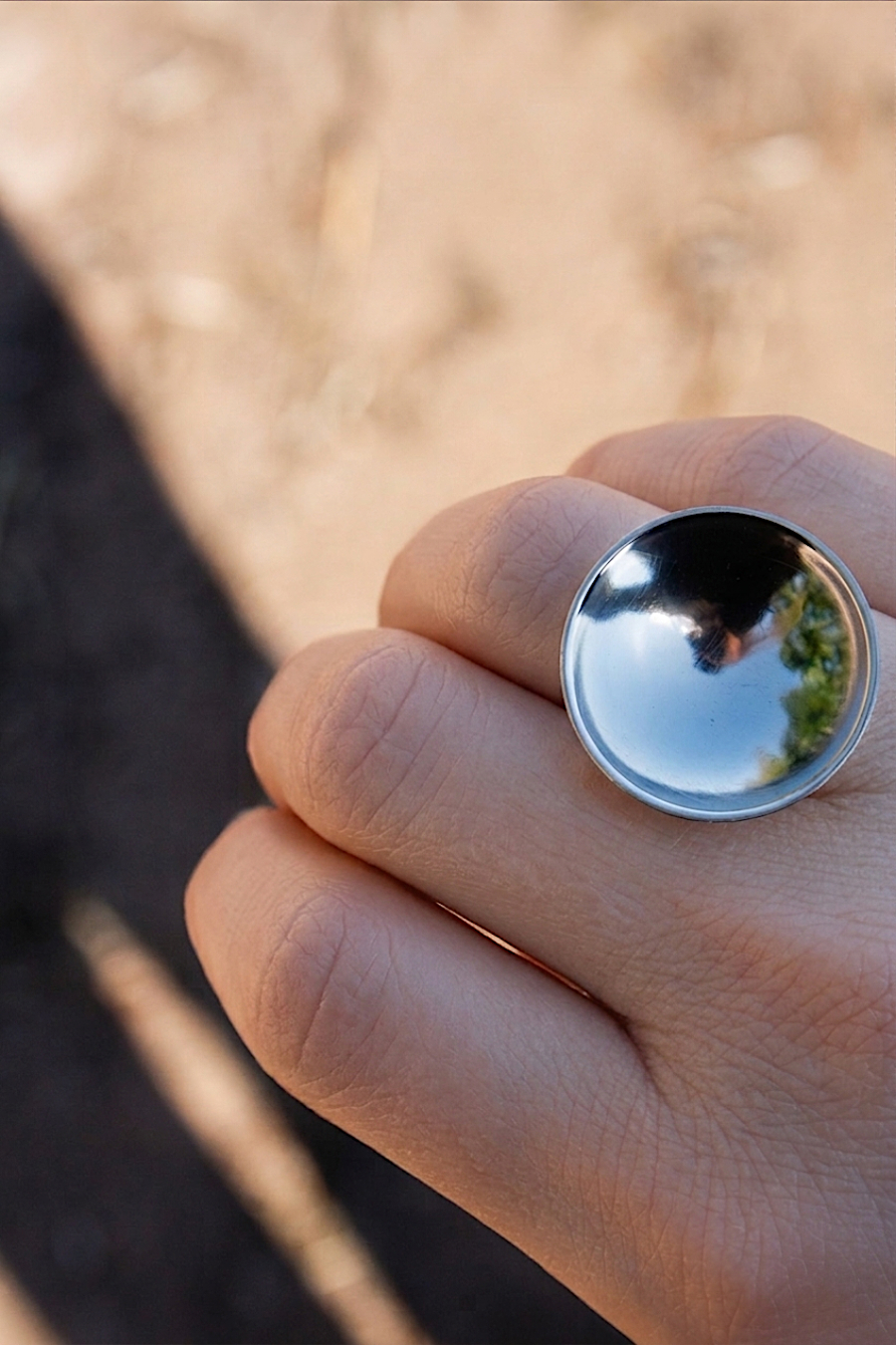 Inspired by the quiet clarity of a forest spring, this concave silver ring captures a sense of calm, purity, and understated beauty. Its smooth, inward curve reflects light like still water, creating a soft, fluid surface that feels both precise and organic. The form is simple yet intentional—echoing untouched nature and the quiet depth of hidden sources.